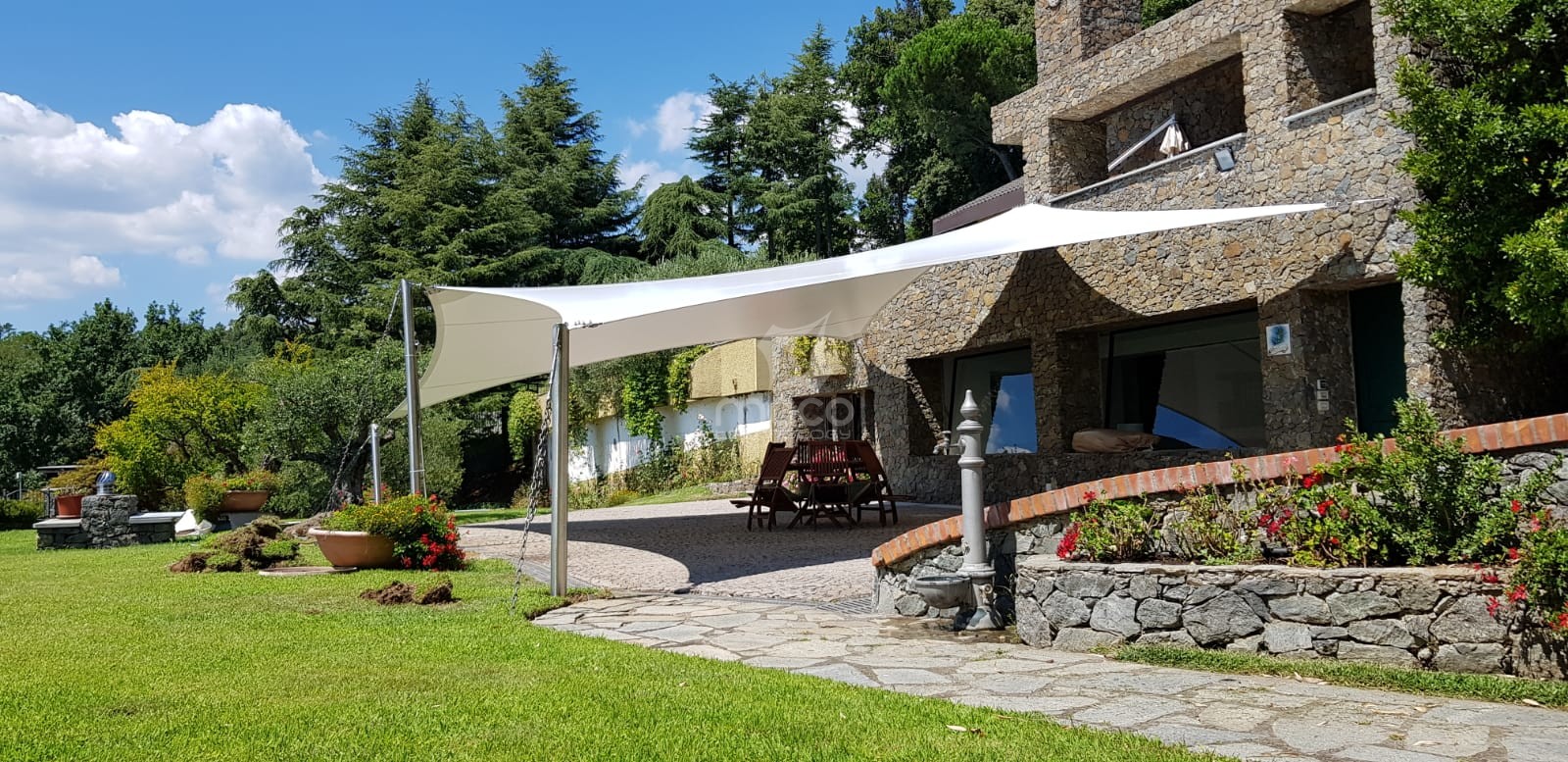 Trong sân vườn biệt thự, bạt căng thường được ứng dụng cho: