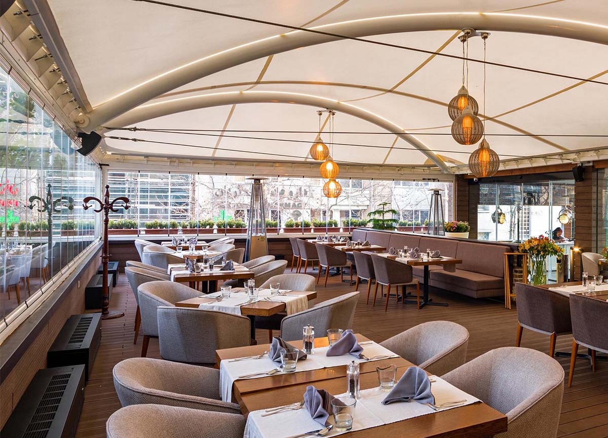 Với các quán cà phê hoặc nhà hàng sân vườn, dạng mái này còn giúp định hướng tầm nhìn về phía không bị chói sáng, tạo không gian ngồi thoải mái hơn vào buổi chiều.